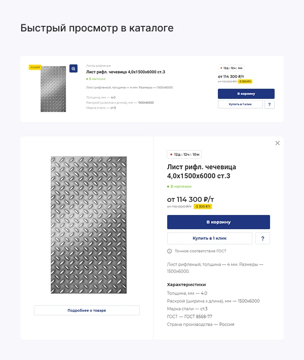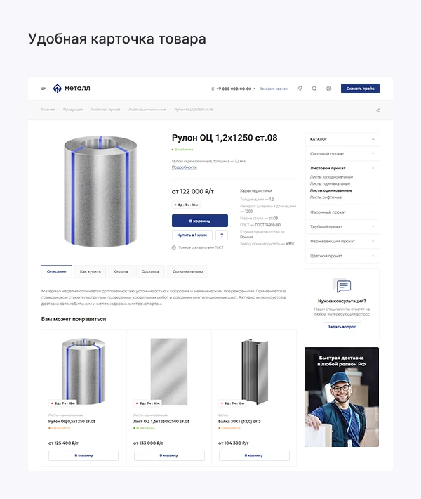 - продуманный каталог для металлопродукции;