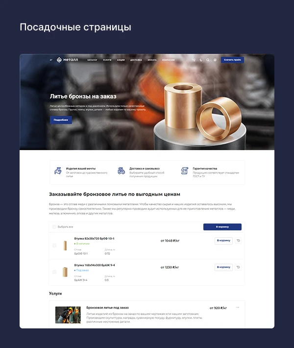 Мы проанализировали сотни сайтов в сфере металлоторговли и внедрили в решение лучшие отраслевые практики: